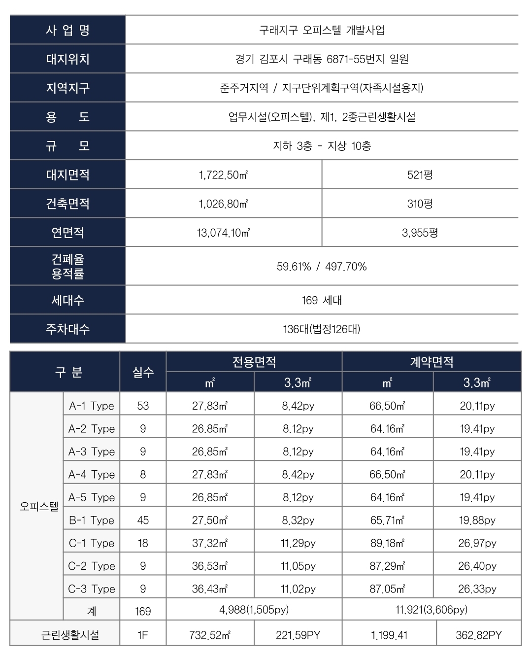총 169실로 구성되어 있으며, 실속형 1.5룸과 넉넉한 2룸 타입이 준비되어 있어 1~2인 가구, 신혼부부, 직장인, 투자자 모두에게 적합합니다. 신축 오피스텔답게 최신 트렌드가 반영된 평면과 고급 마감재, 그리고 빌트인 가전 등 풀퍼니시드 시스템이 기본으로 제공되어 입주 즉시 쾌적한 생활이 가능합니다.