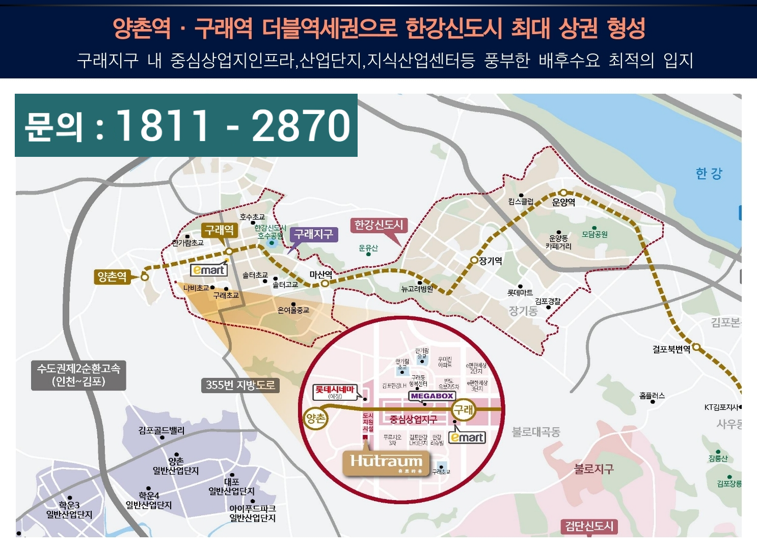 김포 휴트라움 오피스텔은 경기도 김포시 구래동 6871-55번지에 위치한 신축 오피스텔로, 한강신도시 구래지구의 중심상업지구에 자리 잡고 있습니다.